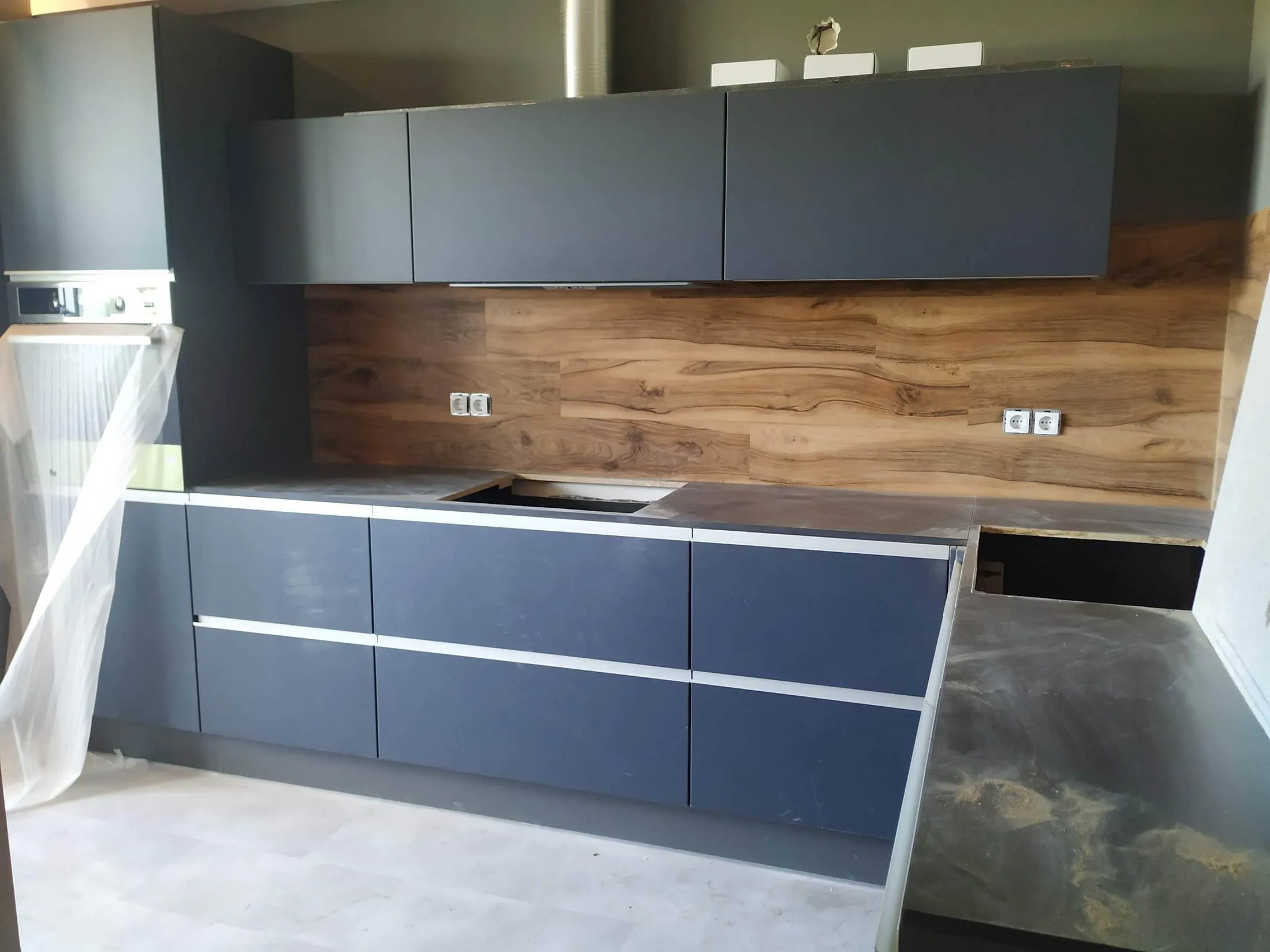Цей проєкт демонструє високоякісне виготовлення та монтаж кухонної стільниці з натурального каменю — ідеального матеріалу для щоденного використання. На фото представлена сучасна кухня з лаконічним дизайном, де головний акцент зроблено на кам’яній поверхні з ідеальними параметрами точності.