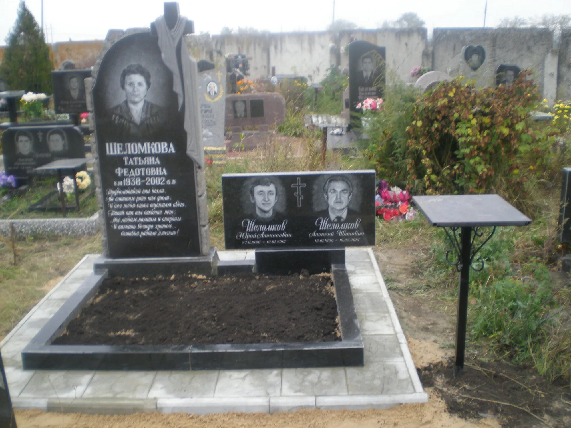 Виготовлення та встановлення родинного пам’ятника з чорного граніту. Меморіальний комплекс з фотогравіруванням, хрестом та лавкою. Надійна гранітна огорожа. Кам’яна робота під ключ у Харкові.