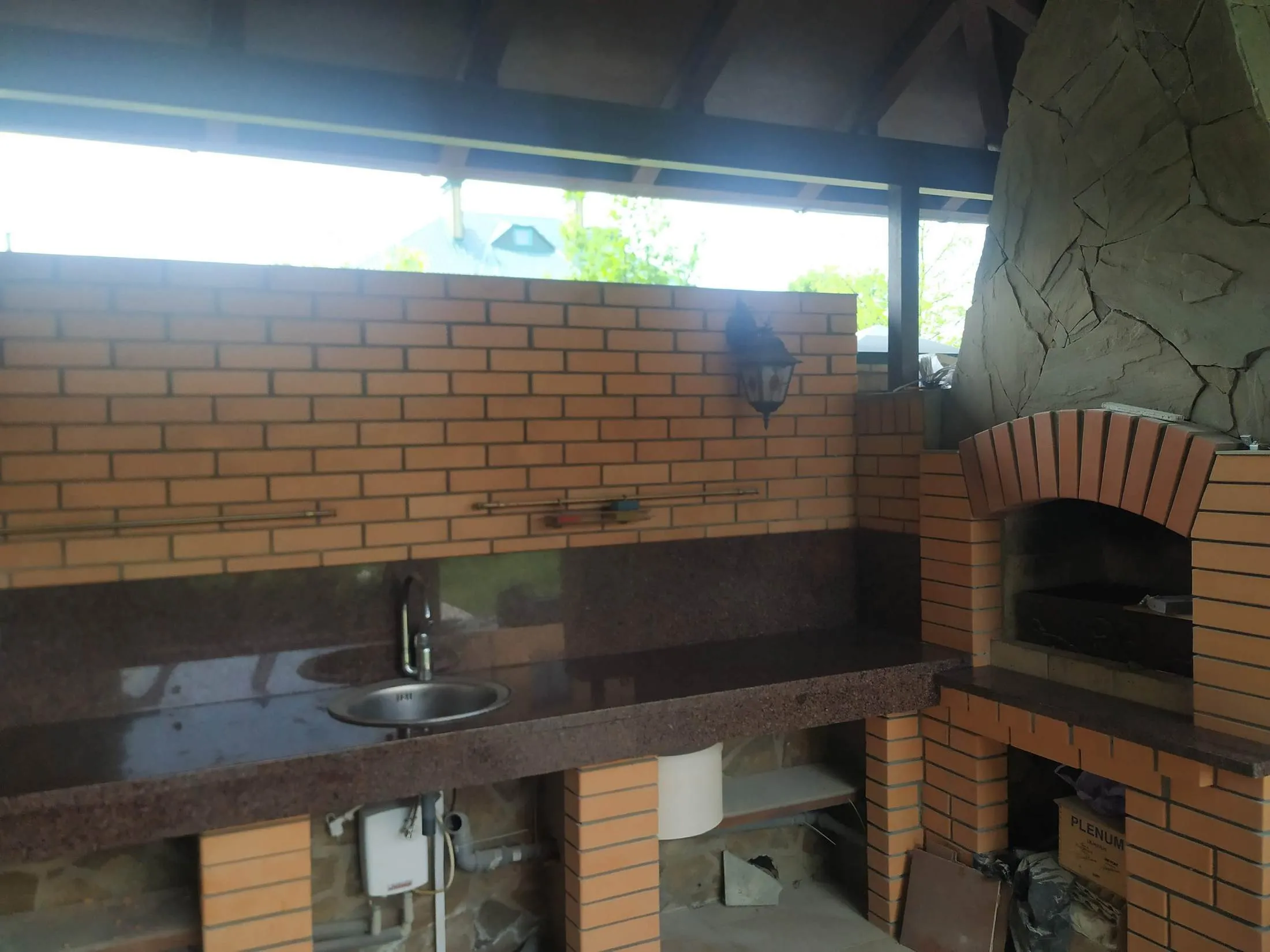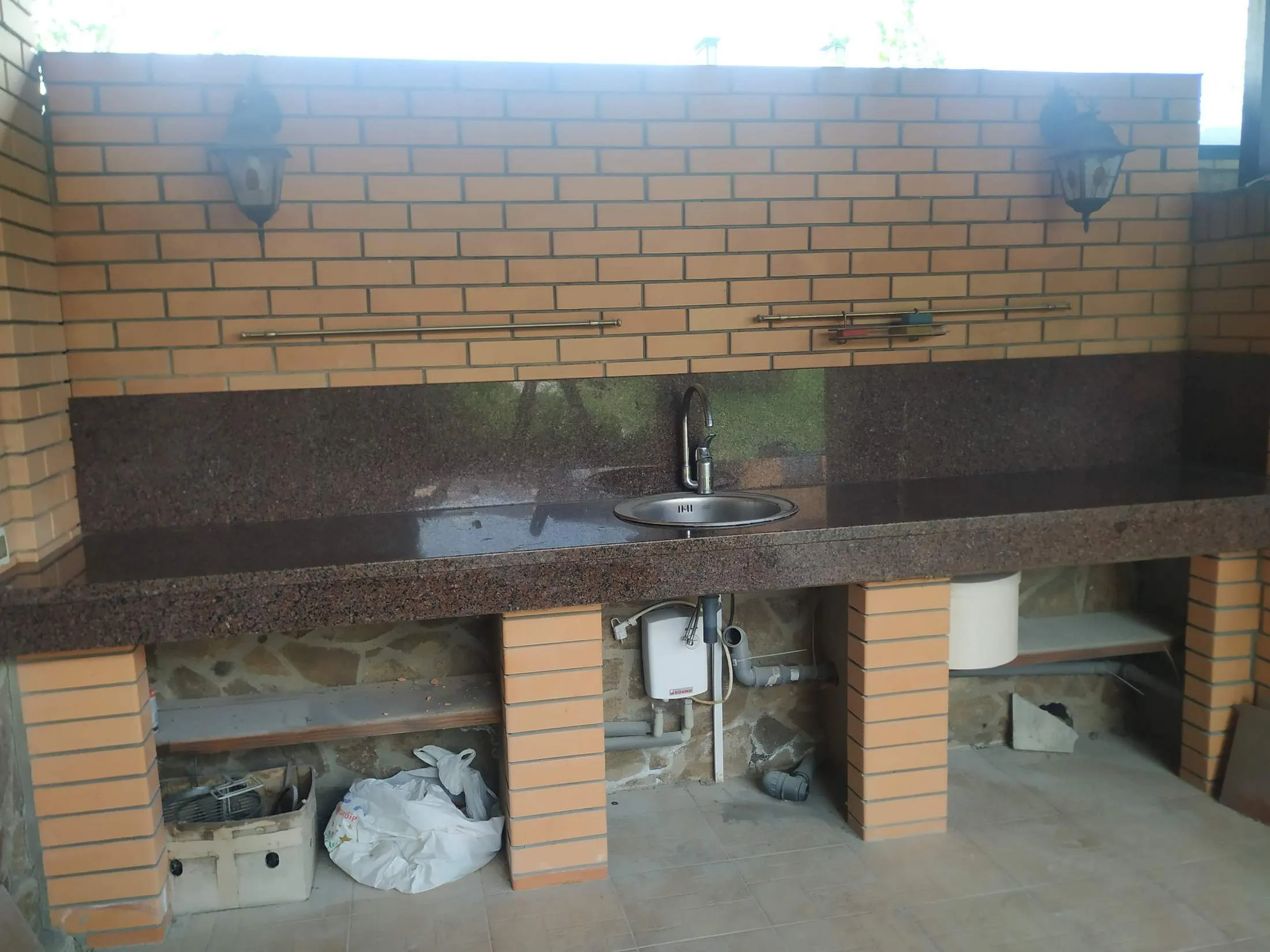 Гранитная столешница с мойкой и фартуком для летней кухни