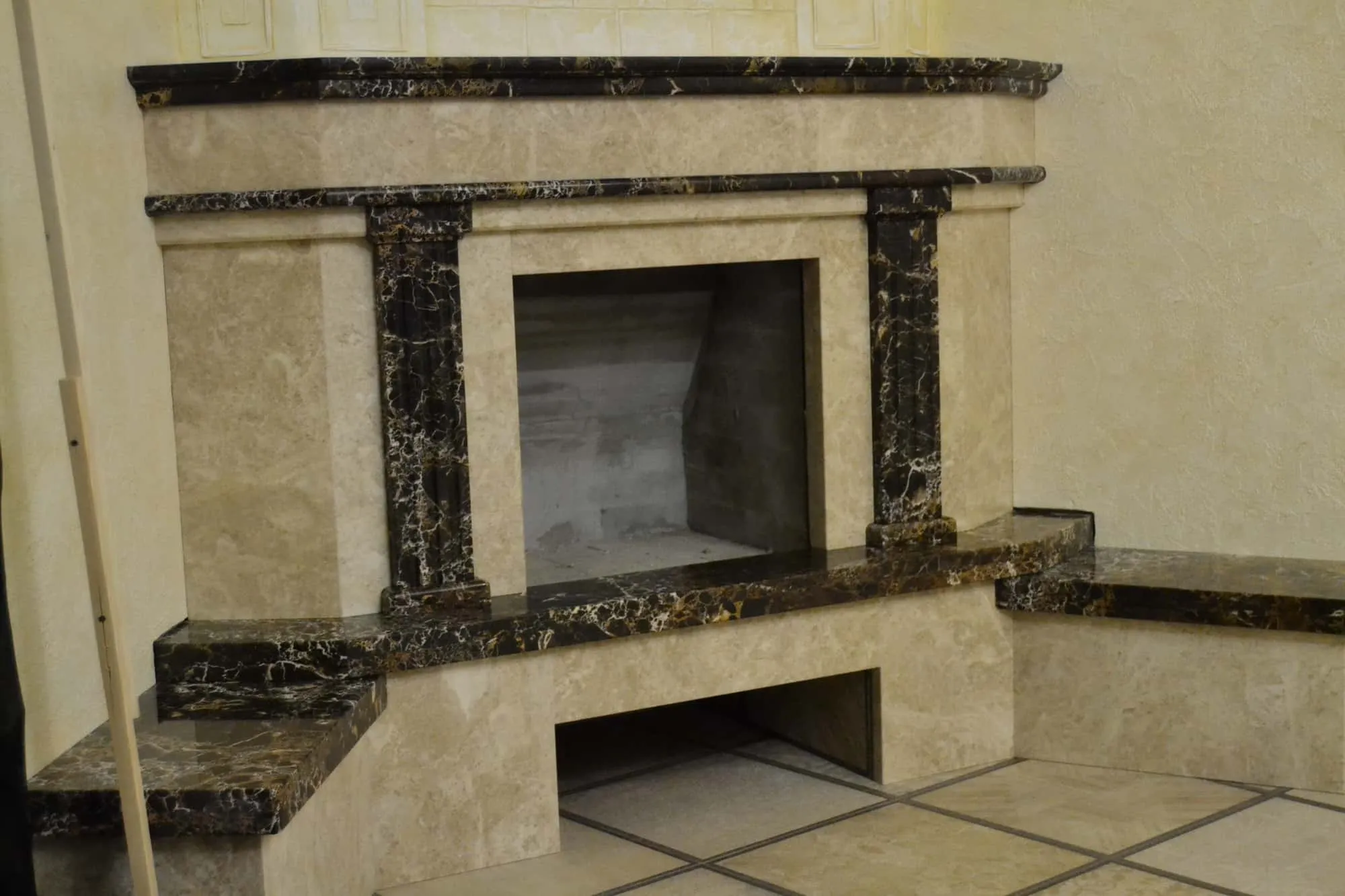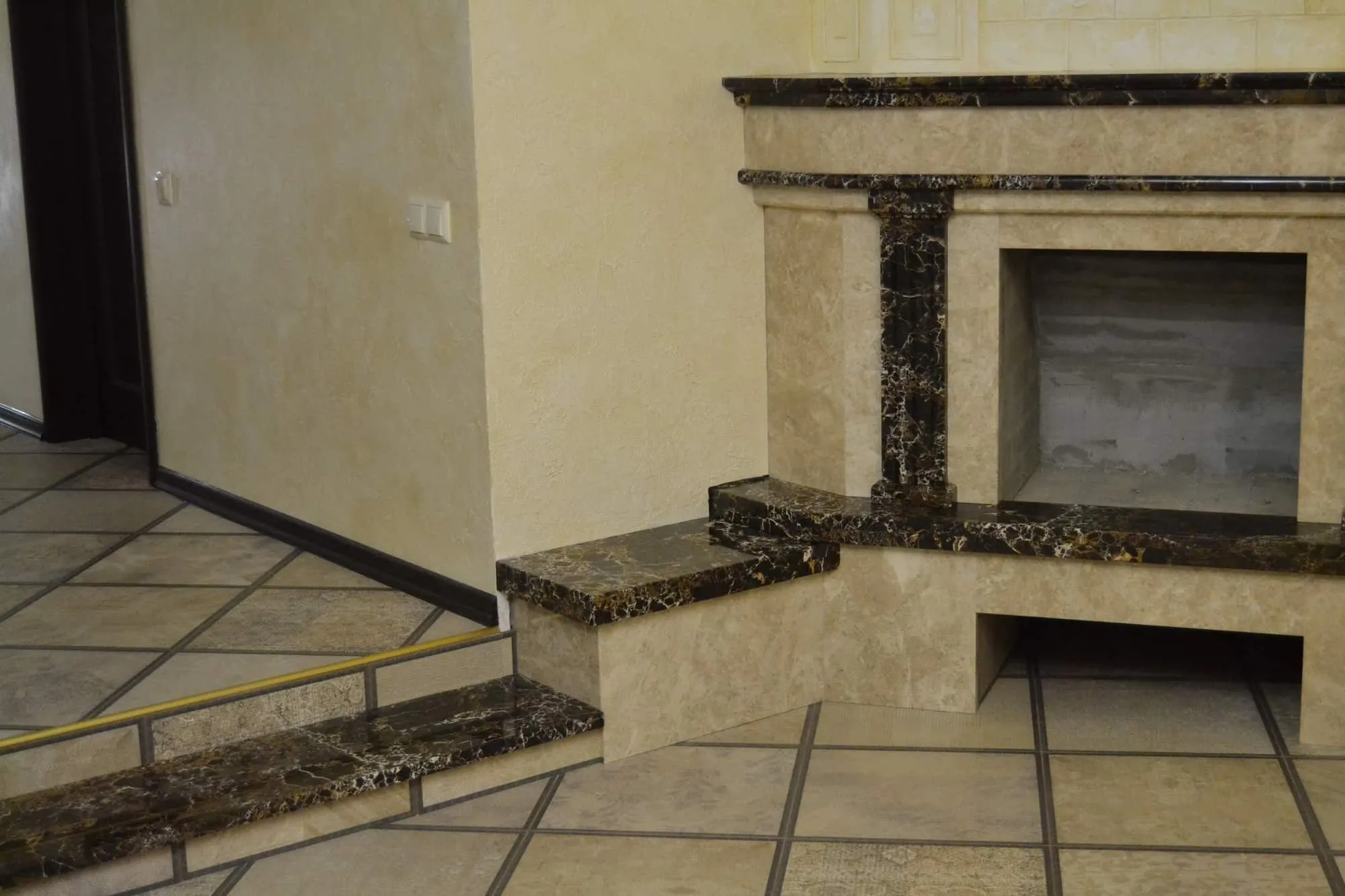 Камин из мрамора на заказ. Отделка камина натуральным камнем. Мраморные камины Emperador Dark и другие виды отделки.
